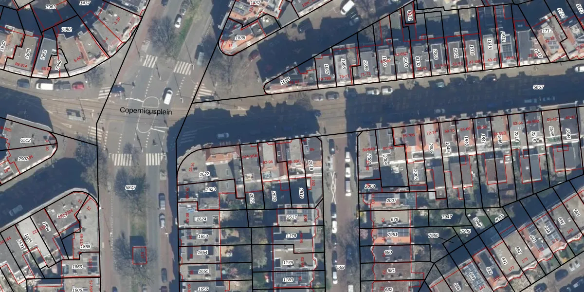 Het adres ligt op het perceel GVH29-AM-2619, dat zich in de kadastrale gemeente 's-Gravenhage bevindt. De gemiddelde perceelgrootte in 's-Gravenhage is 303,34 m². Dit perceel is kleiner: de perceeloppervlakte bedraagt 168 m². De grootste perceeloppervlakte in de kadastrale gemeente is 3,0 ha. De kleinste oppervlakte bedraagt 0 m². Op het perceel liggen in totaal 5 adressen. De laatste wijziging in het de Basisregistratie Kadaster (BRK) was op 03-09-2003.