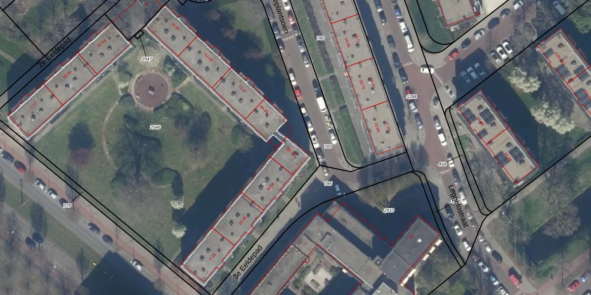 Het adres is gelegen op perceel 2546 in de sectie AW en de kadastrale gemeente 's-Gravenhage. De kadastrale aanduiding is aldus GVH37-AW-2546. Het perceel is met 6468 m² relatief groot. Het gemiddelde ligt in de kadastrale gemeente 's-Gravenhage op 1320,78 m². De grootste perceeloppervlakte in de kadastrale gemeente is 12,9 ha. De kleinste oppervlakte bedraagt 0 m². Er zijn 80 adressen aanwezig op het perceel. De huidige grenzen van het perceel zijn digitaal in de Basisregistratie Kadaster (BRK) geregistreerd op 11-06-2002.