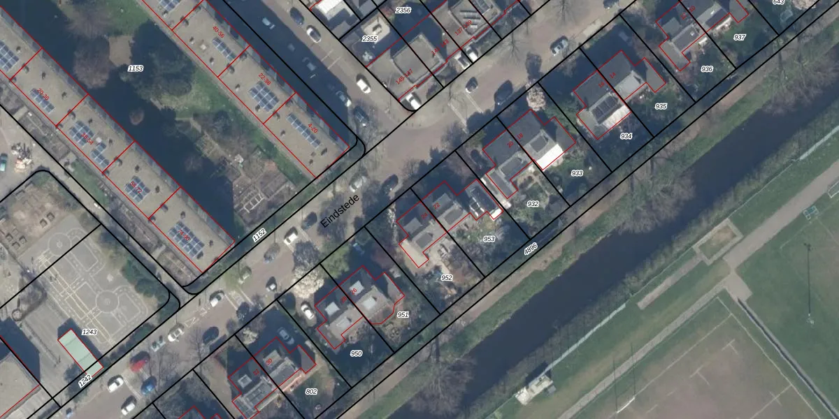 Het perceel waarop Eindstede 24 staat heeft een oppervlakte van 392 m². Dit is een groot perceel. De perceeloppervlakte wordt geregistreerd door het Kadaster. Gedetailleerde informatie over de maten van dit perceel kunt u vinden in het rapport Kadastrale kaart met maatvoering van Eindstede 24.