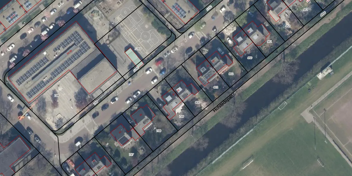 Gebruik de zoekbalk of klik op een perceel voor informatie over de adressen binnen dit perceel.