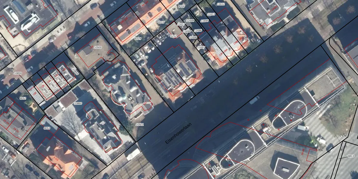Het perceel waarop Eisenhowerlaan 134 staat heeft een oppervlakte van 615 m². Dit is een groot perceel. De perceeloppervlakte wordt geregistreerd door het Kadaster. Gedetailleerde informatie over de maten van dit perceel kunt u vinden in het rapport Kadastrale kaart met maatvoering van Eisenhowerlaan 134.