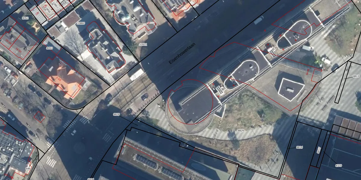 Het perceel waarop Eisenhowerlaan 77-G staat heeft een oppervlakte van 6818 m². Dit is een zeer groot perceel. De perceeloppervlakte wordt geregistreerd door het Kadaster. Gedetailleerde informatie over de maten van dit perceel kunt u vinden in het rapport Kadastrale kaart met maatvoering van Eisenhowerlaan 77-G.