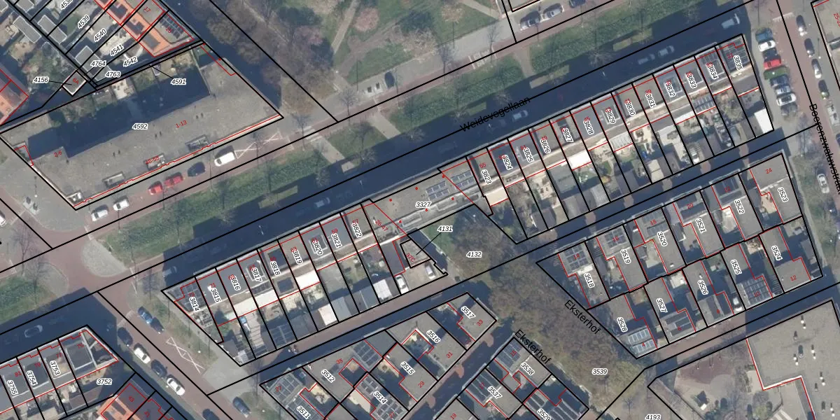 Eksterhof 41 is gelegen op kadastraal perceel GVH45BF3327. Deze kadastrale aanduiding is uniek en wordt gebruikt door het Kadaster om eigendomsrechten en andere zakelijke rechten vast te leggen. Het perceel maakt onderdeel uit van de kadastrale gemeente 's-Gravenhage.