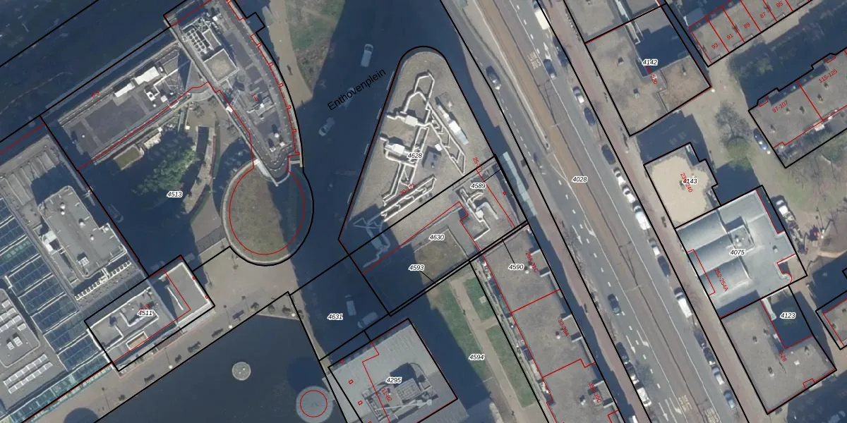 Enthovenplein 105 is gelegen op kadastraal perceel GVH21AD4630. Deze kadastrale aanduiding is uniek en wordt gebruikt door het Kadaster om eigendomsrechten en andere zakelijke rechten vast te leggen. Het perceel maakt onderdeel uit van de kadastrale gemeente 's-Gravenhage.