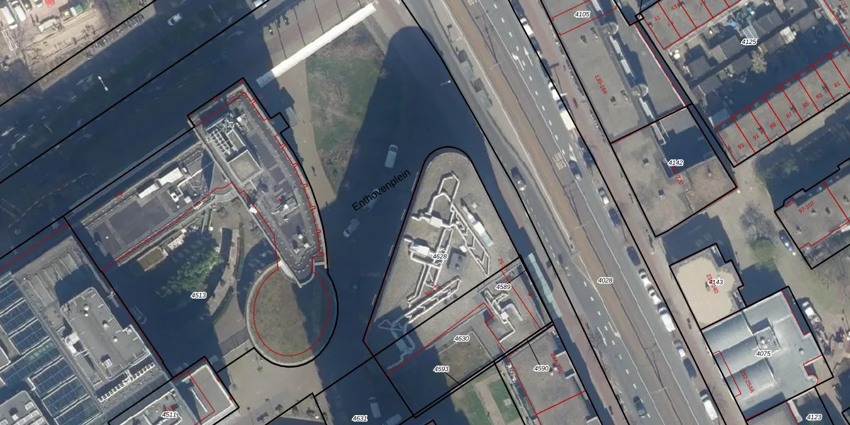 Enthovenplein 155 is gelegen op kadastraal perceel GVH21AD4628. Deze kadastrale aanduiding is uniek en wordt gebruikt door het Kadaster om eigendomsrechten en andere zakelijke rechten vast te leggen. Het perceel maakt onderdeel uit van de kadastrale gemeente 's-Gravenhage.