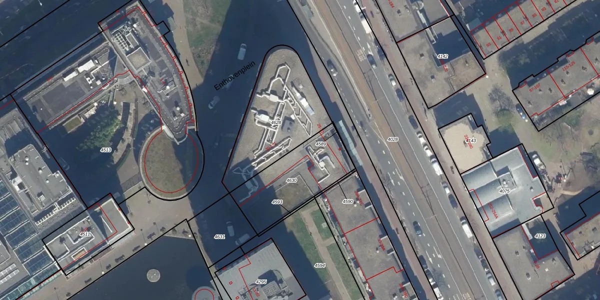 Enthovenplein 63 is gelegen op kadastraal perceel GVH21AD4630. Deze kadastrale aanduiding is uniek en wordt gebruikt door het Kadaster om eigendomsrechten en andere zakelijke rechten vast te leggen. Het perceel maakt onderdeel uit van de kadastrale gemeente 's-Gravenhage.
