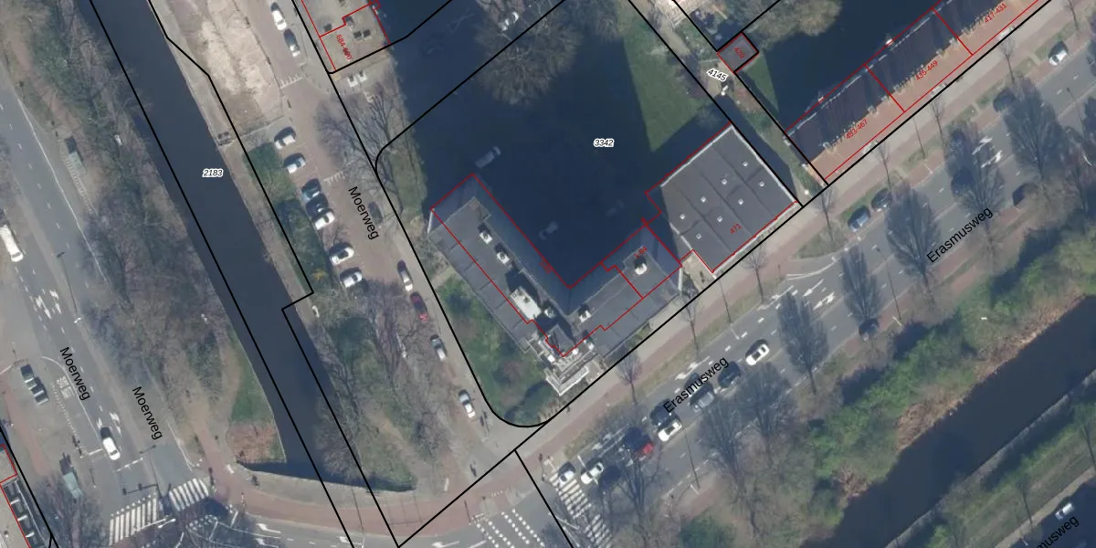 Het perceel waarop Erasmusplein 16 staat heeft een oppervlakte van 3549 m². Dit is een zeer groot perceel. De perceeloppervlakte wordt geregistreerd door het Kadaster. Gedetailleerde informatie over de maten van dit perceel kunt u vinden in het rapport Kadastrale kaart met maatvoering van Erasmusplein 16.