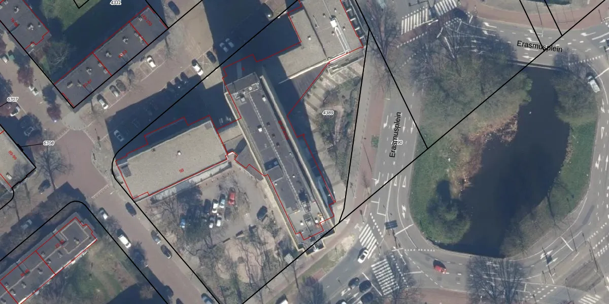 Het perceel waarop Erasmusplein 87-k311 staat heeft een oppervlakte van 5274 m². Dit is een zeer groot perceel. De perceeloppervlakte wordt geregistreerd door het Kadaster. Gedetailleerde informatie over de maten van dit perceel kunt u vinden in het rapport Kadastrale kaart met maatvoering van Erasmusplein 87-k311.