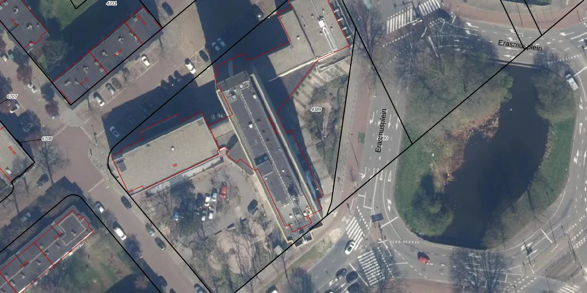 Het perceel waarop Erasmusplein 87-k408 staat heeft een oppervlakte van 5274 m². Dit is een zeer groot perceel. De perceeloppervlakte wordt geregistreerd door het Kadaster. Gedetailleerde informatie over de maten van dit perceel kunt u vinden in het rapport Kadastrale kaart met maatvoering van Erasmusplein 87-k408.