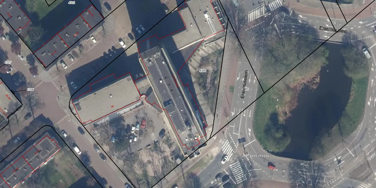 Het perceel waarop Erasmusplein 87-k802 staat heeft een oppervlakte van 5274 m². Dit is een zeer groot perceel. De perceeloppervlakte wordt geregistreerd door het Kadaster. Gedetailleerde informatie over de maten van dit perceel kunt u vinden in het rapport Kadastrale kaart met maatvoering van Erasmusplein 87-k802.