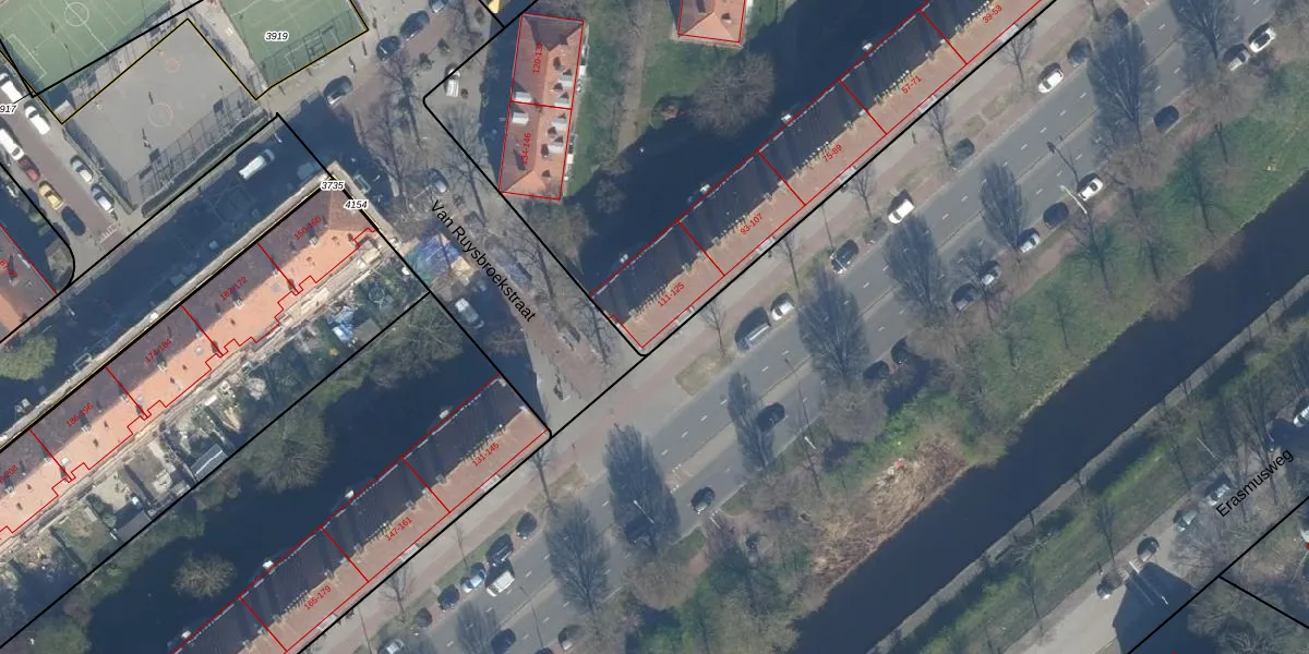 Het perceel waarop Erasmusweg 119 staat heeft een oppervlakte van 9055 m². Dit is een zeer groot perceel. De perceeloppervlakte wordt geregistreerd door het Kadaster. Gedetailleerde informatie over de maten van dit perceel kunt u vinden in het rapport Kadastrale kaart met maatvoering van Erasmusweg 119.