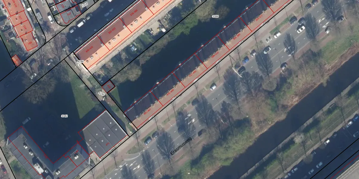 Erasmusweg 437 is gelegen op kadastraal perceel GVH20AC3344. Deze kadastrale aanduiding is uniek en wordt gebruikt door het Kadaster om eigendomsrechten en andere zakelijke rechten vast te leggen. Het perceel maakt onderdeel uit van de kadastrale gemeente 's-Gravenhage.
