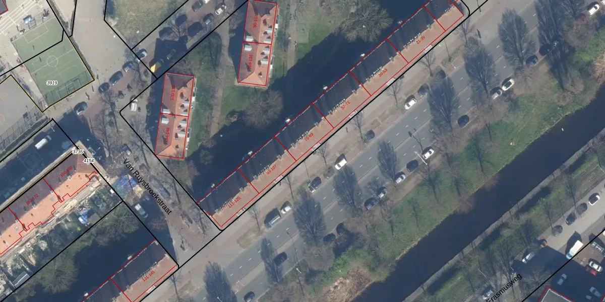 Het perceel waarop Erasmusweg 83 staat heeft een oppervlakte van 9055 m². Dit is een zeer groot perceel. De perceeloppervlakte wordt geregistreerd door het Kadaster. Gedetailleerde informatie over de maten van dit perceel kunt u vinden in het rapport Kadastrale kaart met maatvoering van Erasmusweg 83.