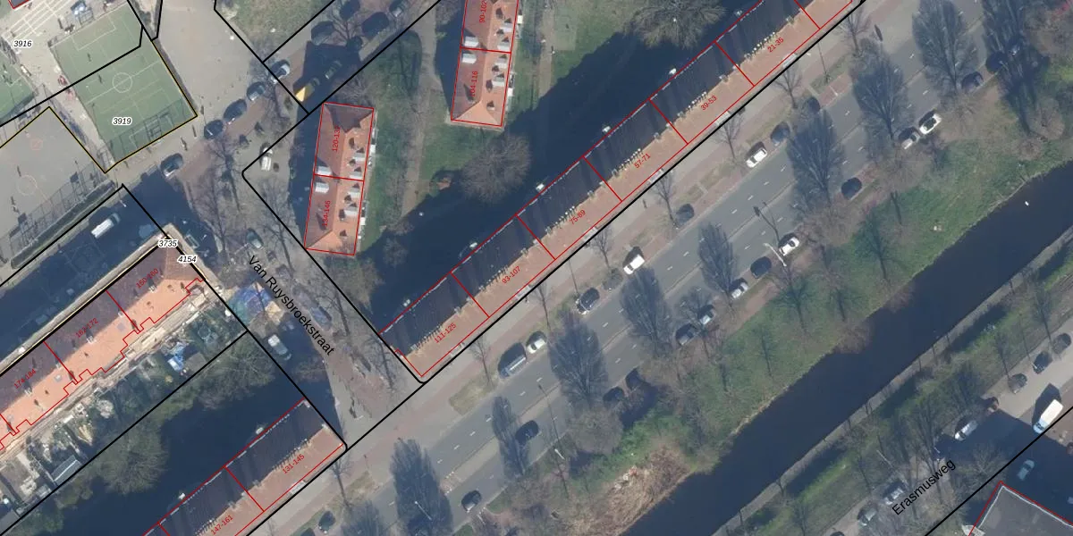 Erasmusweg 97 is gelegen op kadastraal perceel GVH20AC2078. Deze kadastrale aanduiding is uniek en wordt gebruikt door het Kadaster om eigendomsrechten en andere zakelijke rechten vast te leggen. Het perceel maakt onderdeel uit van de kadastrale gemeente 's-Gravenhage.