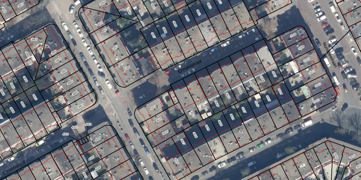 Het perceel waarop Ermelostraat 48 staat heeft een oppervlakte van 190 m². Dit is een middelgroot perceel. De perceeloppervlakte wordt geregistreerd door het Kadaster. Gedetailleerde informatie over de maten van dit perceel kunt u vinden in het rapport Kadastrale kaart met maatvoering van Ermelostraat 48.