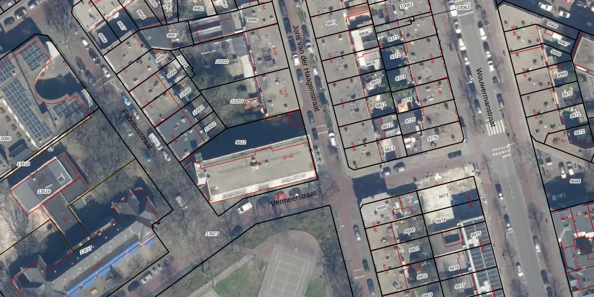Het perceel waarop het adres ligt is GVH08-L-9822. De afkorting 'GVH08' staat voor kadastrale gemeente 's-Gravenhage. Het perceel is met 956 m² relatief groot. Het gemiddelde ligt in de kadastrale gemeente 's-Gravenhage op 468,2 m². Het grootste perceel in de kadastrale gemeente is 3,8 ha. Het kleinste perceel heeft een oppervlakte van 0 m². Op het perceel zijn 23 adressen aanwezig. De laatste wijziging in het de Basisregistratie Kadaster (BRK) was op 31-10-2007.