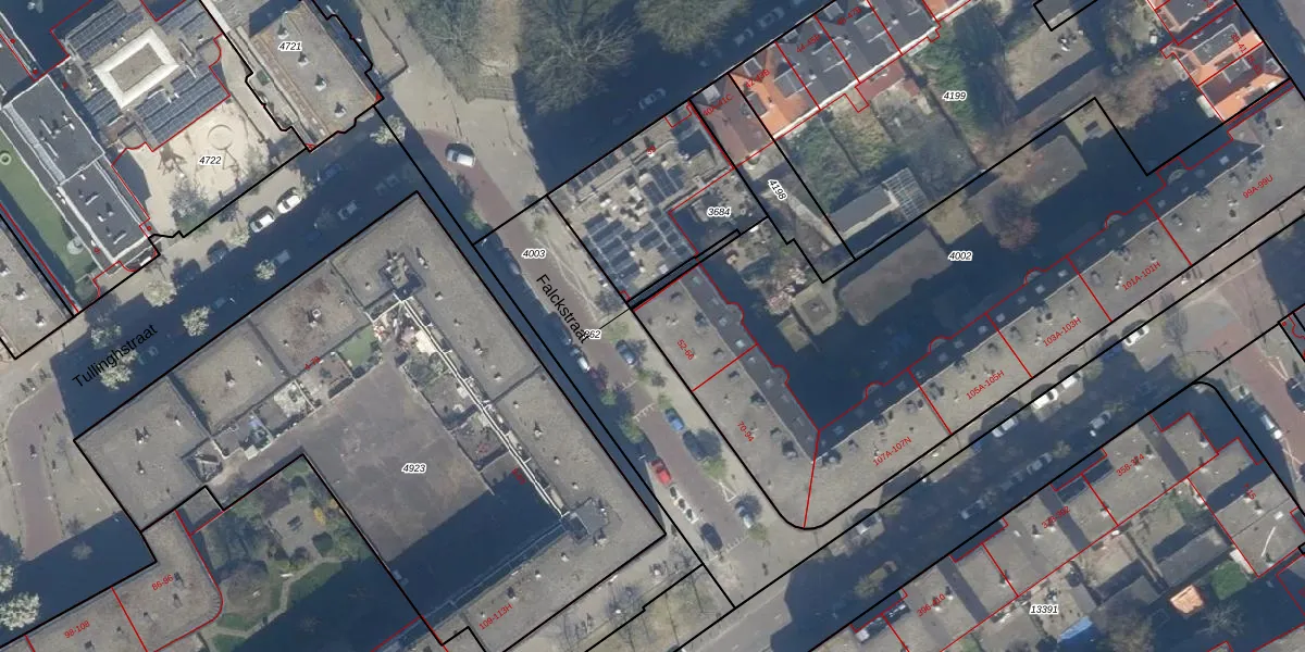 Het perceel waarop Falckstraat 62 staat heeft een oppervlakte van 3041 m². Dit is een zeer groot perceel. De perceeloppervlakte wordt geregistreerd door het Kadaster. Gedetailleerde informatie over de maten van dit perceel kunt u vinden in het rapport Kadastrale kaart met maatvoering van Falckstraat 62.