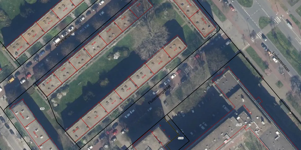 Het perceel waarop Fluitenbergstraat 33 staat heeft een oppervlakte van 6414 m². Dit is een zeer groot perceel. De perceeloppervlakte wordt geregistreerd door het Kadaster. Gedetailleerde informatie over de maten van dit perceel kunt u vinden in het rapport Kadastrale kaart met maatvoering van Fluitenbergstraat 33.