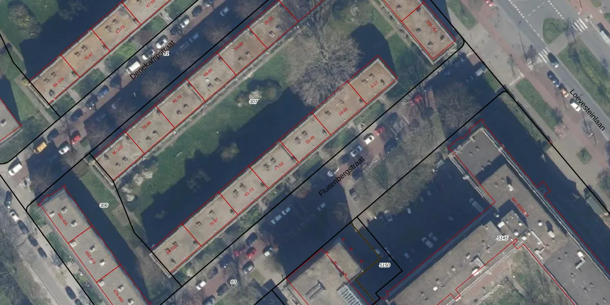 Het perceel waarop Fluitenbergstraat 41 staat heeft een oppervlakte van 6414 m². Dit is een zeer groot perceel. De perceeloppervlakte wordt geregistreerd door het Kadaster. Gedetailleerde informatie over de maten van dit perceel kunt u vinden in het rapport Kadastrale kaart met maatvoering van Fluitenbergstraat 41.