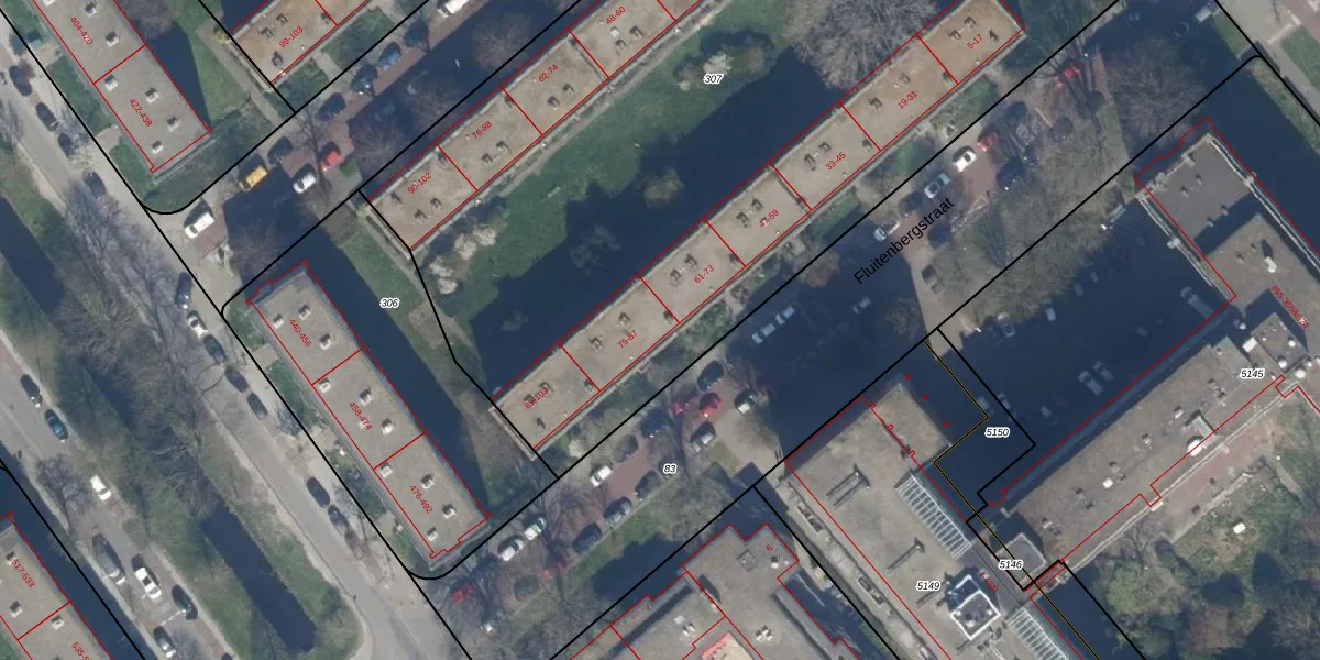 Het perceel waarop Fluitenbergstraat 75 staat heeft een oppervlakte van 6414 m². Dit is een zeer groot perceel. De perceeloppervlakte wordt geregistreerd door het Kadaster. Gedetailleerde informatie over de maten van dit perceel kunt u vinden in het rapport Kadastrale kaart met maatvoering van Fluitenbergstraat 75.