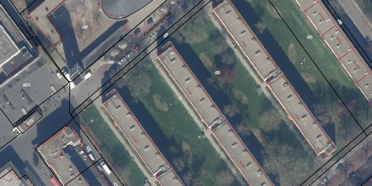 Het perceel waarop Fluitenbergstraat 76 staat heeft een oppervlakte van 1,3 ha. Dit is een zeer groot perceel. De perceeloppervlakte wordt geregistreerd door het Kadaster. Gedetailleerde informatie over de maten van dit perceel kunt u vinden in het rapport Kadastrale kaart met maatvoering van Fluitenbergstraat 76.