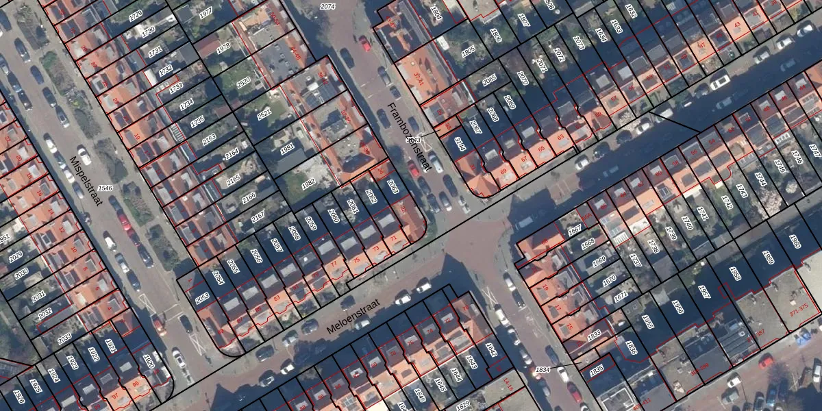 Frambozenstraat 22 is gelegen op kadastraal perceel GVH36AV2063. Deze kadastrale aanduiding is uniek en wordt gebruikt door het Kadaster om eigendomsrechten en andere zakelijke rechten vast te leggen. Het perceel maakt onderdeel uit van de kadastrale gemeente 's-Gravenhage.