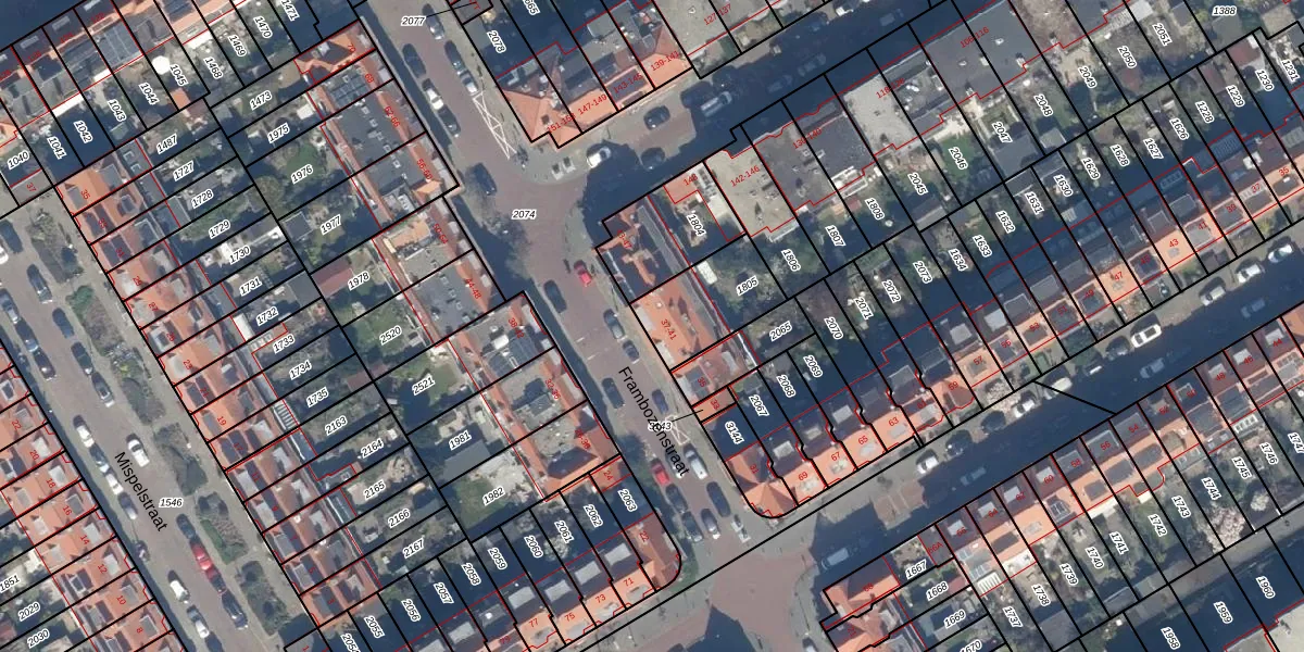Frambozenstraat 41 is gelegen op kadastraal perceel GVH36AV1805. Deze kadastrale aanduiding is uniek en wordt gebruikt door het Kadaster om eigendomsrechten en andere zakelijke rechten vast te leggen. Het perceel maakt onderdeel uit van de kadastrale gemeente 's-Gravenhage.