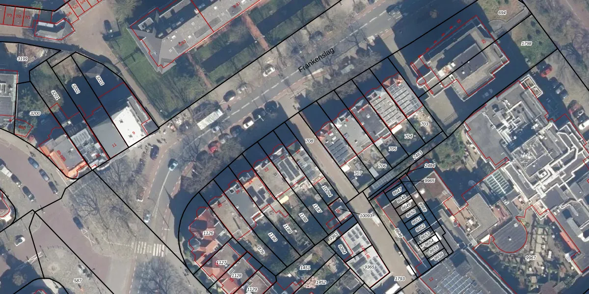 Frankenslag 18 is gelegen op kadastraal perceel GVH27AK10094. Deze kadastrale aanduiding is uniek en wordt gebruikt door het Kadaster om eigendomsrechten en andere zakelijke rechten vast te leggen. Het perceel maakt onderdeel uit van de kadastrale gemeente 's-Gravenhage.