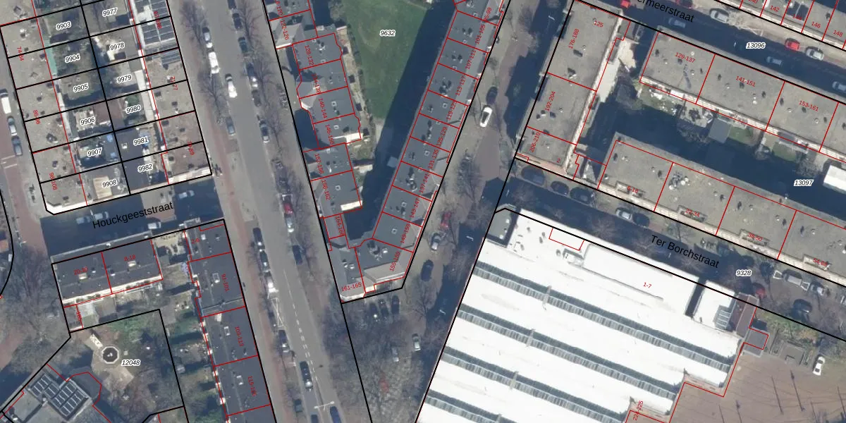 Het perceel waarop het adres ligt is GVH08-L-9632. De afkorting 'GVH08' staat voor kadastrale gemeente 's-Gravenhage. De oppervlakte van het perceel is 3613 m². Dat is groter dan gemiddeld in 's-Gravenhage, waar de gemiddelde perceeloppervlakte op 468,2 m² ligt. De grootste perceeloppervlakte in de kadastrale gemeente is 3,8 ha. De kleinste oppervlakte bedraagt 0 m². Op het perceel zijn 91 adressen aanwezig. De huidige grenzen van het perceel zijn digitaal in de Basisregistratie Kadaster (BRK) geregistreerd op 31-10-2007.