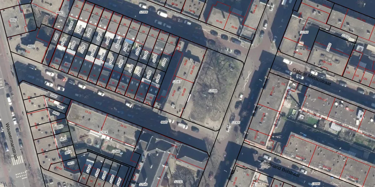 Het adres is gelegen op perceel 12167 in de sectie L en de kadastrale gemeente 's-Gravenhage. De kadastrale aanduiding is aldus GVH08-L-12167. De gemiddelde perceeloppervlakte in de kadastrale gemeente 's-Gravenhage is 468,2 m². Dit perceel is met zijn 644 m² dus groter dan gemiddeld. Het grootste perceel in de kadastrale gemeente is 3,8 ha. Het kleinste perceel heeft een oppervlakte van 0 m². Op het perceel zijn 21 adressen aanwezig. In de Basisregistratie Kadaster (BRK) werden de grenzen van het perceel geregistreerd op 19-09-2003.