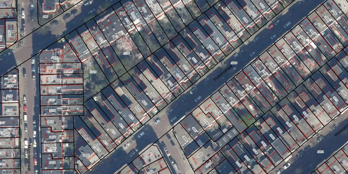 Het perceel waarop Fultonstraat 151 staat heeft een oppervlakte van 177 m². Dit is een middelgroot perceel. De perceeloppervlakte wordt geregistreerd door het Kadaster. Gedetailleerde informatie over de maten van dit perceel kunt u vinden in het rapport Kadastrale kaart met maatvoering van Fultonstraat 151.