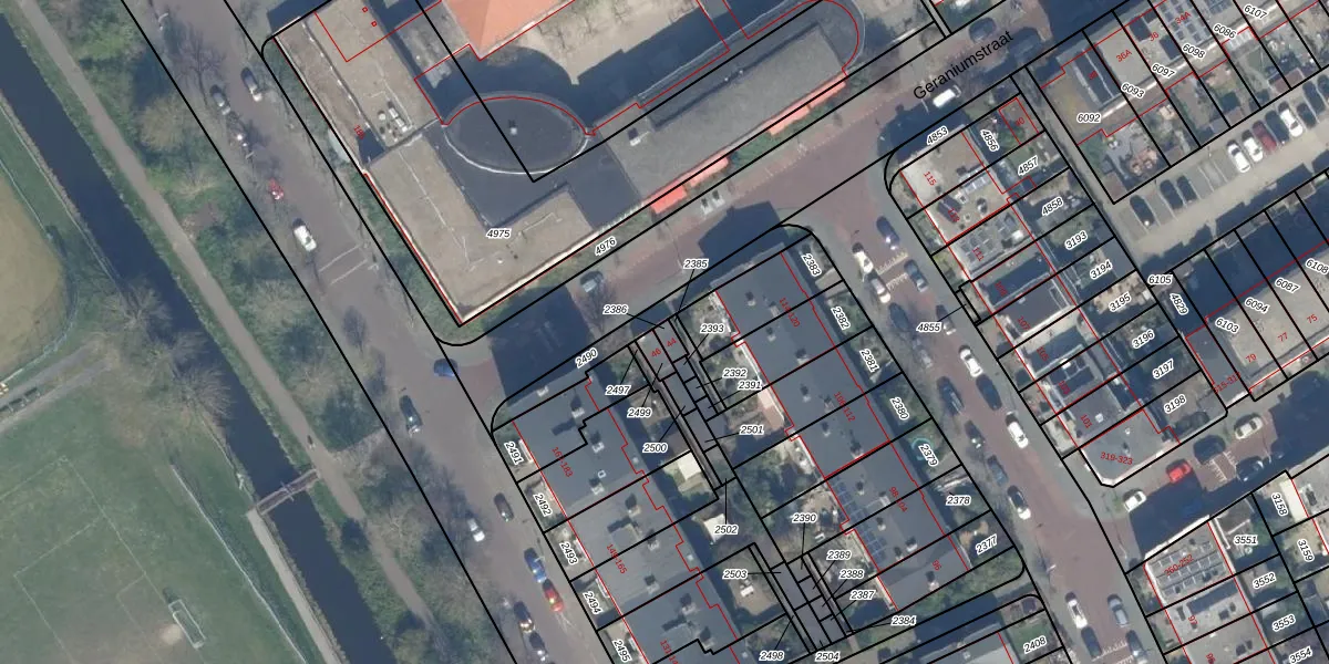 Het perceel waarop Geraniumstraat 44 staat heeft een oppervlakte van 18 m². Dit is een klein perceel. De perceeloppervlakte wordt geregistreerd door het Kadaster. Gedetailleerde informatie over de maten van dit perceel kunt u vinden in het rapport Kadastrale kaart met maatvoering van Geraniumstraat 44.