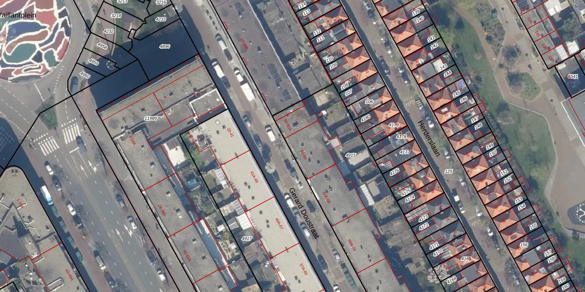Het perceel waarop Gerard Doustraat 52 staat heeft een oppervlakte van 3818 m². Dit is een zeer groot perceel. De perceeloppervlakte wordt geregistreerd door het Kadaster. Gedetailleerde informatie over de maten van dit perceel kunt u vinden in het rapport Kadastrale kaart met maatvoering van Gerard Doustraat 52.