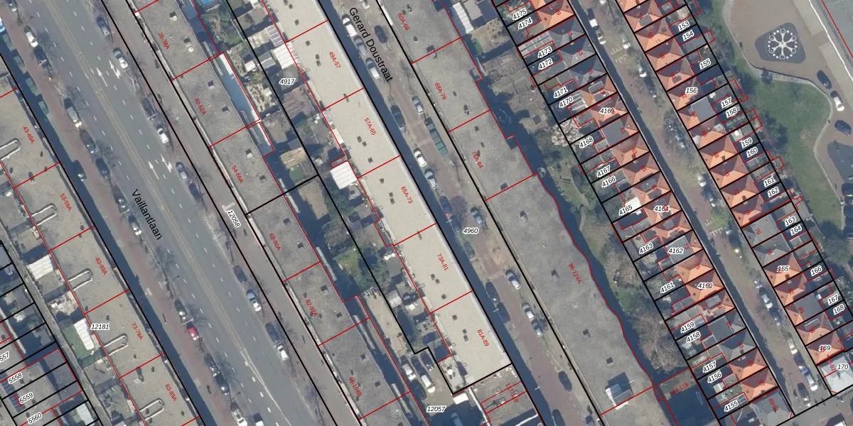 Het perceel waarop Gerard Doustraat 69 staat heeft een oppervlakte van 2400 m². Dit is een zeer groot perceel. De perceeloppervlakte wordt geregistreerd door het Kadaster. Gedetailleerde informatie over de maten van dit perceel kunt u vinden in het rapport Kadastrale kaart met maatvoering van Gerard Doustraat 69.