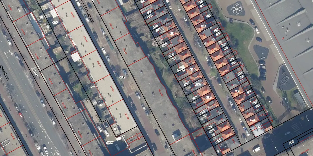Het perceel waarop Gerard Doustraat 98-A staat heeft een oppervlakte van 3818 m². Dit is een zeer groot perceel. De perceeloppervlakte wordt geregistreerd door het Kadaster. Gedetailleerde informatie over de maten van dit perceel kunt u vinden in het rapport Kadastrale kaart met maatvoering van Gerard Doustraat 98-A.