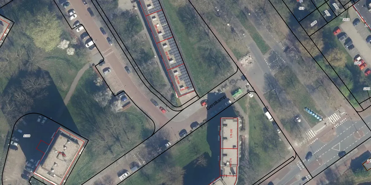 Het perceel waarop Gerstkamp 292 staat heeft een oppervlakte van 6429 m². Dit is een zeer groot perceel. De perceeloppervlakte wordt geregistreerd door het Kadaster. Gedetailleerde informatie over de maten van dit perceel kunt u vinden in het rapport Kadastrale kaart met maatvoering van Gerstkamp 292.