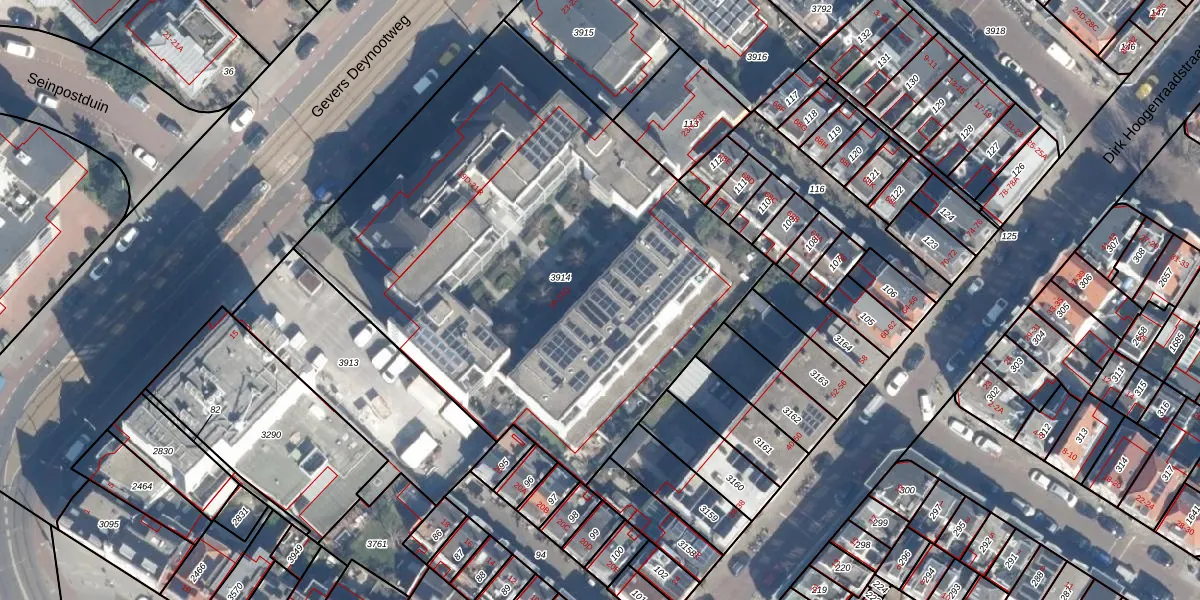 Gevers Deynootweg 21-D is gelegen op kadastraal perceel GVH23AF3914. Deze kadastrale aanduiding is uniek en wordt gebruikt door het Kadaster om eigendomsrechten en andere zakelijke rechten vast te leggen. Het perceel maakt onderdeel uit van de kadastrale gemeente 's-Gravenhage.
