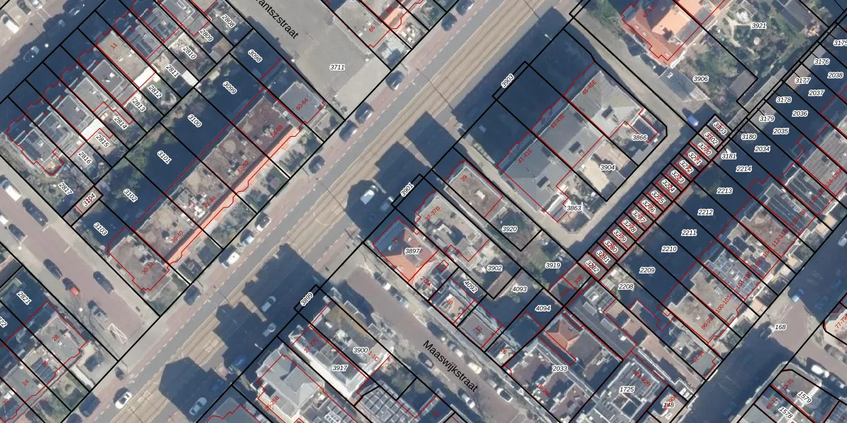 Het adres is gelegen op perceel 3902 in de sectie AF en de kadastrale gemeente 's-Gravenhage. De kadastrale aanduiding is aldus GVH23-AF-3902. De gemiddelde perceeloppervlakte in de kadastrale gemeente 's-Gravenhage is 307,3 m². Dit perceel is met zijn 317 m² dus groter dan gemiddeld. De grootste perceeloppervlakte in de kadastrale gemeente is 4,0 ha. De kleinste oppervlakte bedraagt 0 m². Er zijn 3 adressen aanwezig op het perceel. De huidige grenzen van het perceel zijn digitaal in de Basisregistratie Kadaster (BRK) geregistreerd op 15-10-2003.