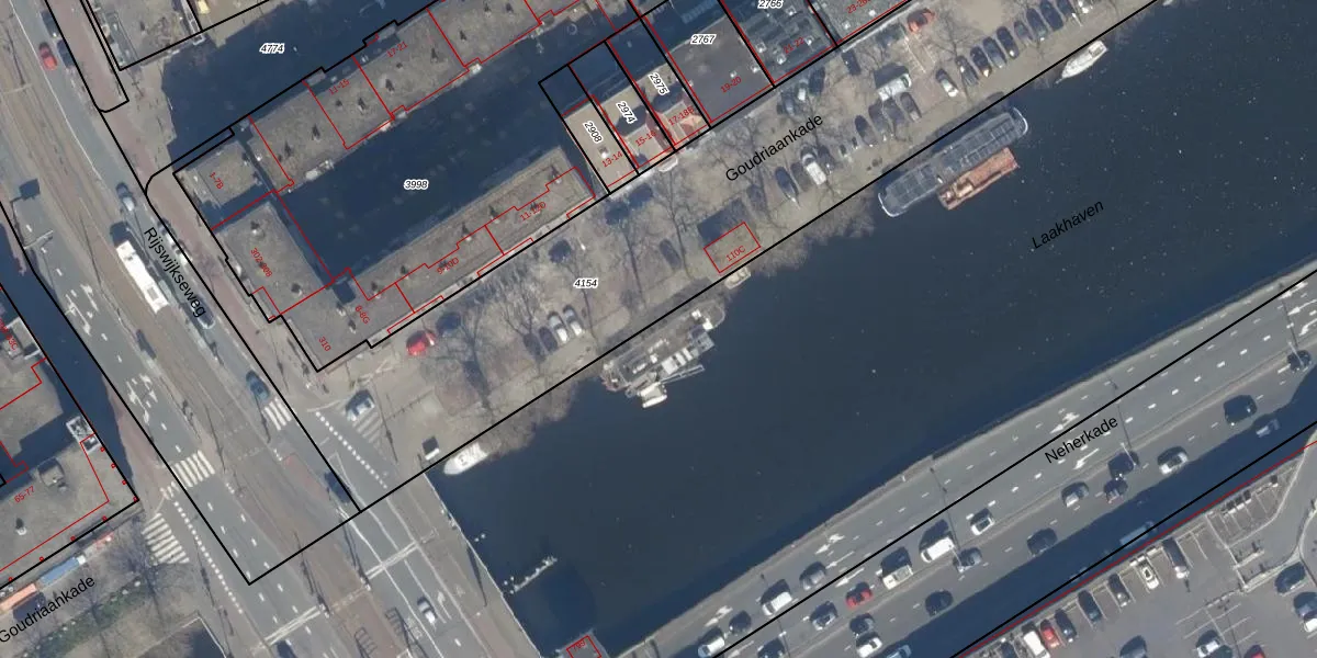 Het perceel waarop Goudriaankade 111 staat heeft een oppervlakte van 9,1 ha. Dit is een zeer groot perceel. De perceeloppervlakte wordt geregistreerd door het Kadaster. Gedetailleerde informatie over de maten van dit perceel kunt u vinden in het rapport Kadastrale kaart met maatvoering van Goudriaankade 111.