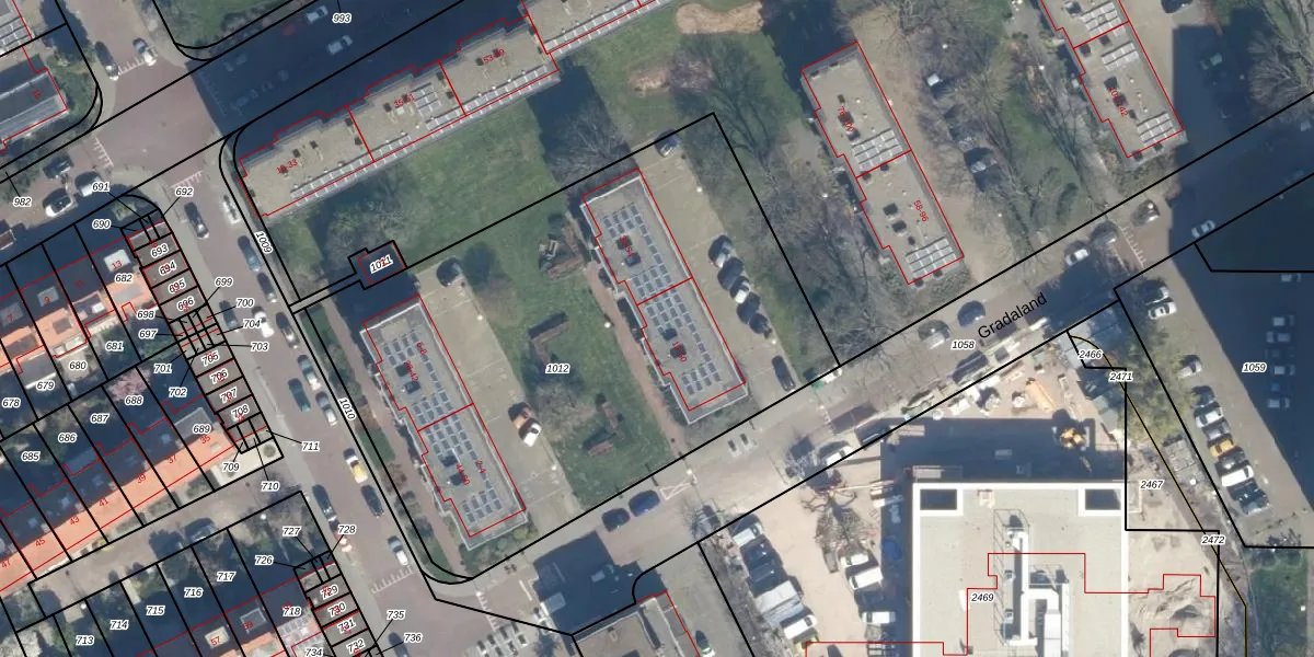 Het perceel waarop Gradaland 22 staat heeft een oppervlakte van 3104 m². Dit is een zeer groot perceel. De perceeloppervlakte wordt geregistreerd door het Kadaster. Gedetailleerde informatie over de maten van dit perceel kunt u vinden in het rapport Kadastrale kaart met maatvoering van Gradaland 22.