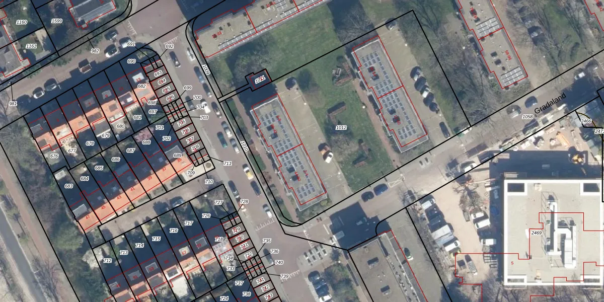 Het perceel waarop Gradaland 4 staat heeft een oppervlakte van 3104 m². Dit is een zeer groot perceel. De perceeloppervlakte wordt geregistreerd door het Kadaster. Gedetailleerde informatie over de maten van dit perceel kunt u vinden in het rapport Kadastrale kaart met maatvoering van Gradaland 4.
