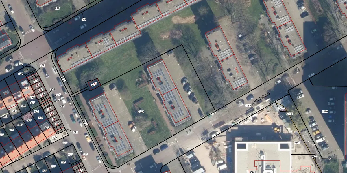 Het perceel waarop Gradaland 52 staat heeft een oppervlakte van 3104 m². Dit is een zeer groot perceel. De perceeloppervlakte wordt geregistreerd door het Kadaster. Gedetailleerde informatie over de maten van dit perceel kunt u vinden in het rapport Kadastrale kaart met maatvoering van Gradaland 52.