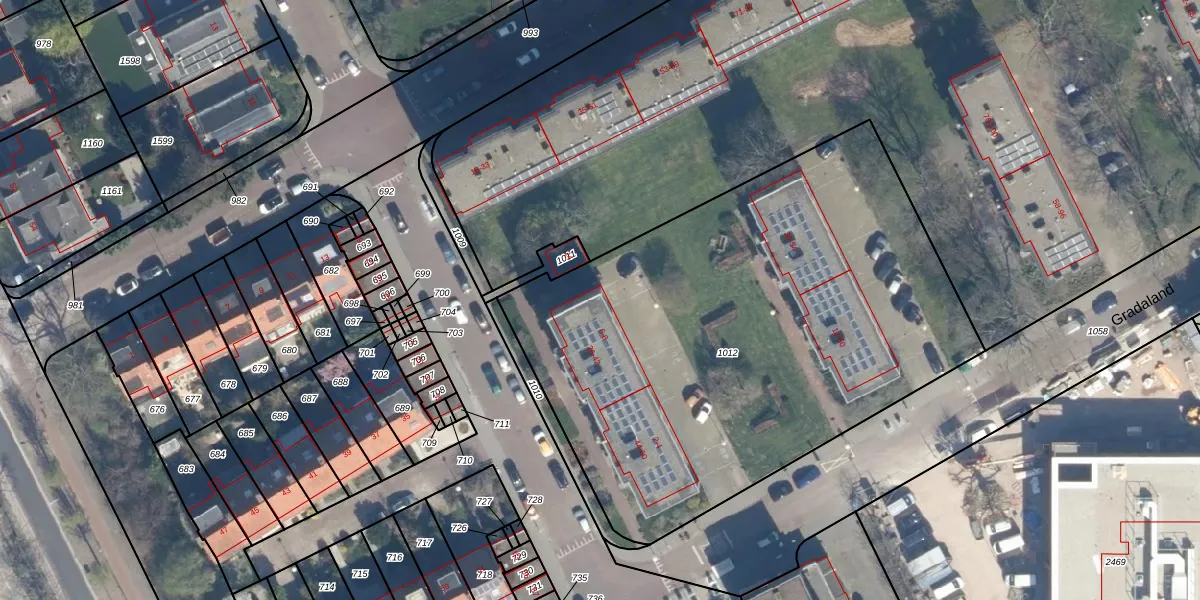 Het perceel waarop Gradaland 8 staat heeft een oppervlakte van 3104 m². Dit is een zeer groot perceel. De perceeloppervlakte wordt geregistreerd door het Kadaster. Gedetailleerde informatie over de maten van dit perceel kunt u vinden in het rapport Kadastrale kaart met maatvoering van Gradaland 8.