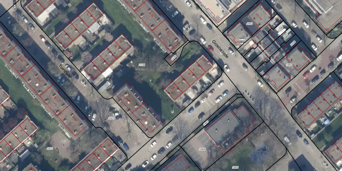 Het perceel waarop Groenezijde 103 staat heeft een oppervlakte van 6543 m². Dit is een zeer groot perceel. De perceeloppervlakte wordt geregistreerd door het Kadaster. Gedetailleerde informatie over de maten van dit perceel kunt u vinden in het rapport Kadastrale kaart met maatvoering van Groenezijde 103.