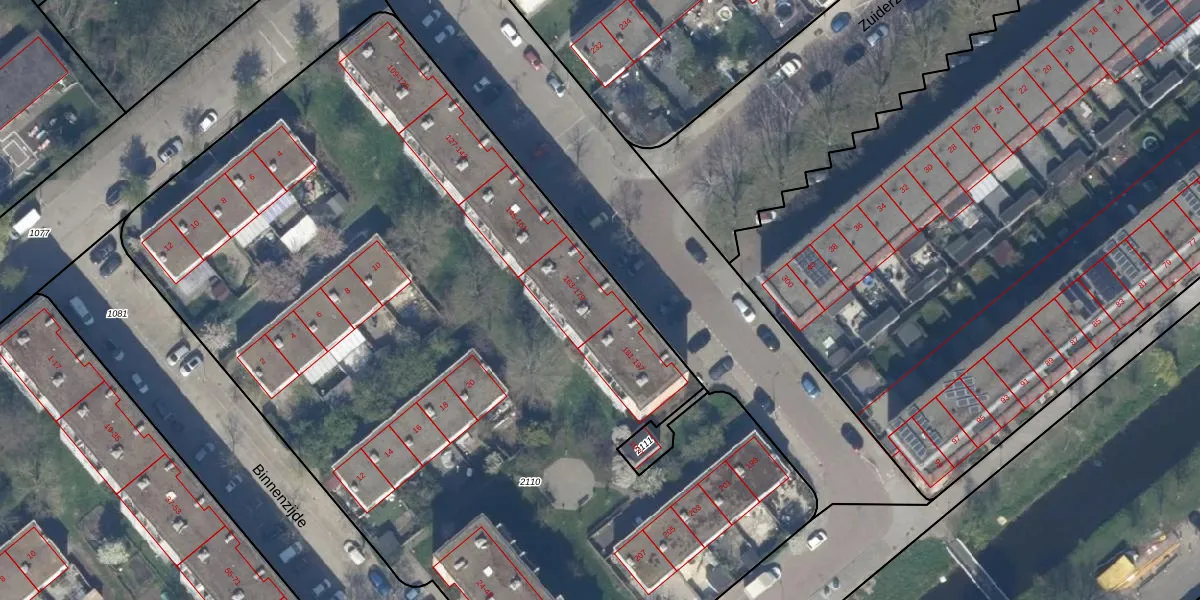 Het perceel waarop Groenezijde 173 staat heeft een oppervlakte van 6536 m². Dit is een zeer groot perceel. De perceeloppervlakte wordt geregistreerd door het Kadaster. Gedetailleerde informatie over de maten van dit perceel kunt u vinden in het rapport Kadastrale kaart met maatvoering van Groenezijde 173.