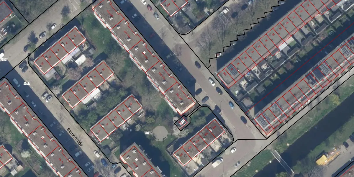 Het perceel waarop Groenezijde 181 staat heeft een oppervlakte van 6536 m². Dit is een zeer groot perceel. De perceeloppervlakte wordt geregistreerd door het Kadaster. Gedetailleerde informatie over de maten van dit perceel kunt u vinden in het rapport Kadastrale kaart met maatvoering van Groenezijde 181.