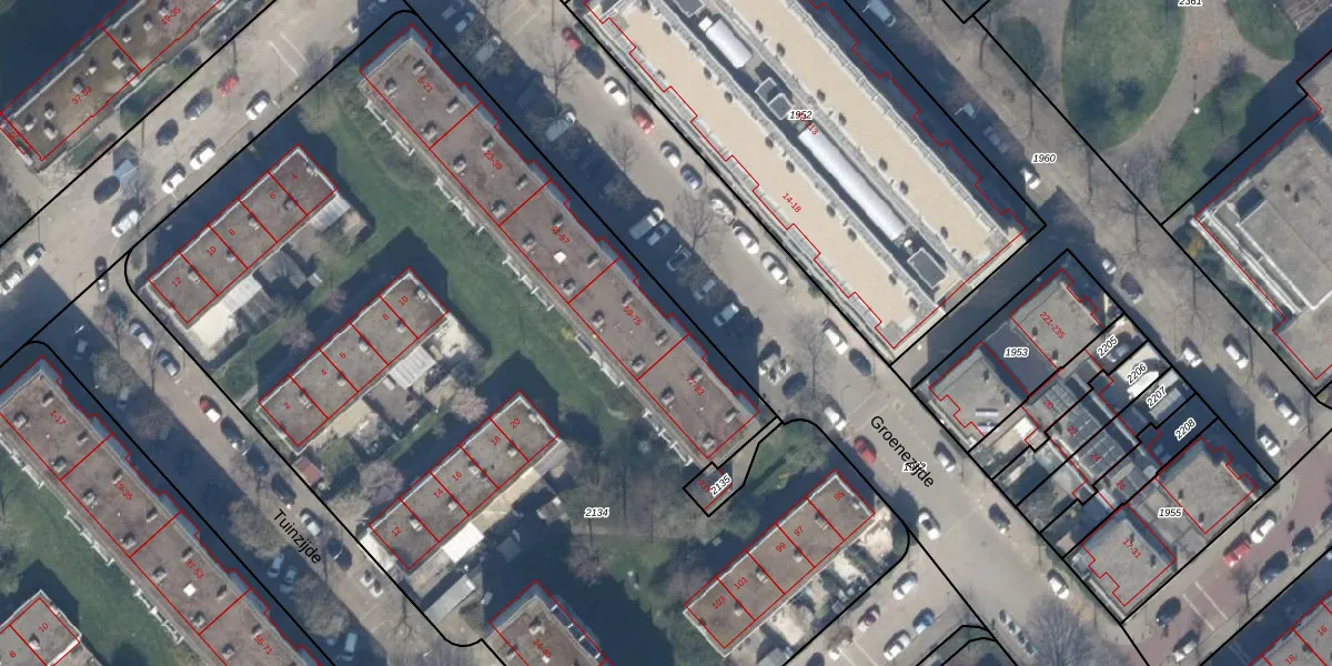 Het perceel waarop Groenezijde 69 staat heeft een oppervlakte van 6543 m². Dit is een zeer groot perceel. De perceeloppervlakte wordt geregistreerd door het Kadaster. Gedetailleerde informatie over de maten van dit perceel kunt u vinden in het rapport Kadastrale kaart met maatvoering van Groenezijde 69.