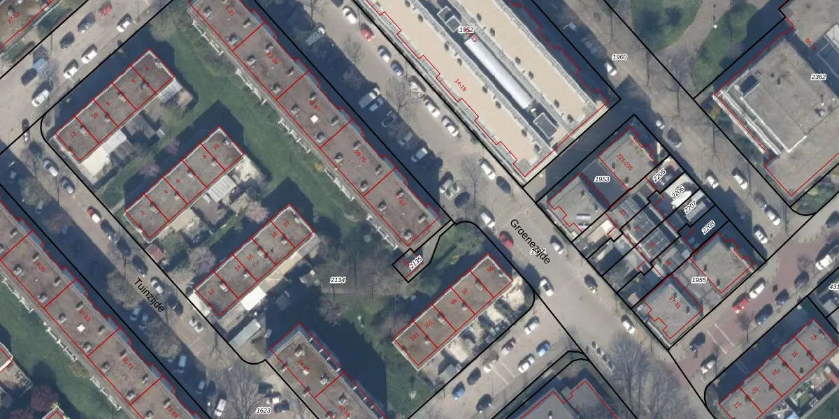 Het perceel waarop Groenezijde 91 staat heeft een oppervlakte van 6543 m². Dit is een zeer groot perceel. De perceeloppervlakte wordt geregistreerd door het Kadaster. Gedetailleerde informatie over de maten van dit perceel kunt u vinden in het rapport Kadastrale kaart met maatvoering van Groenezijde 91.