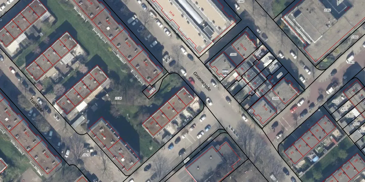 Het perceel waarop Groenezijde 95 staat heeft een oppervlakte van 6543 m². Dit is een zeer groot perceel. De perceeloppervlakte wordt geregistreerd door het Kadaster. Gedetailleerde informatie over de maten van dit perceel kunt u vinden in het rapport Kadastrale kaart met maatvoering van Groenezijde 95.