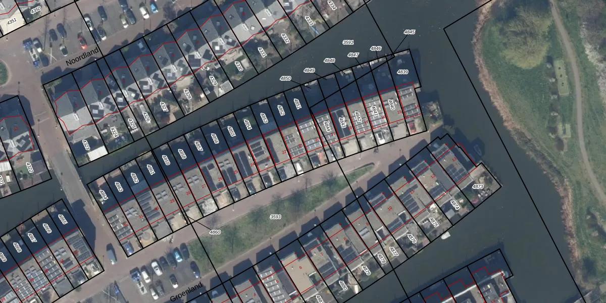 Het perceel waarop Groenland 21 staat heeft een oppervlakte van 159 m². Dit is een middelgroot perceel. De perceeloppervlakte wordt geregistreerd door het Kadaster. Gedetailleerde informatie over de maten van dit perceel kunt u vinden in het rapport Kadastrale kaart met maatvoering van Groenland 21.